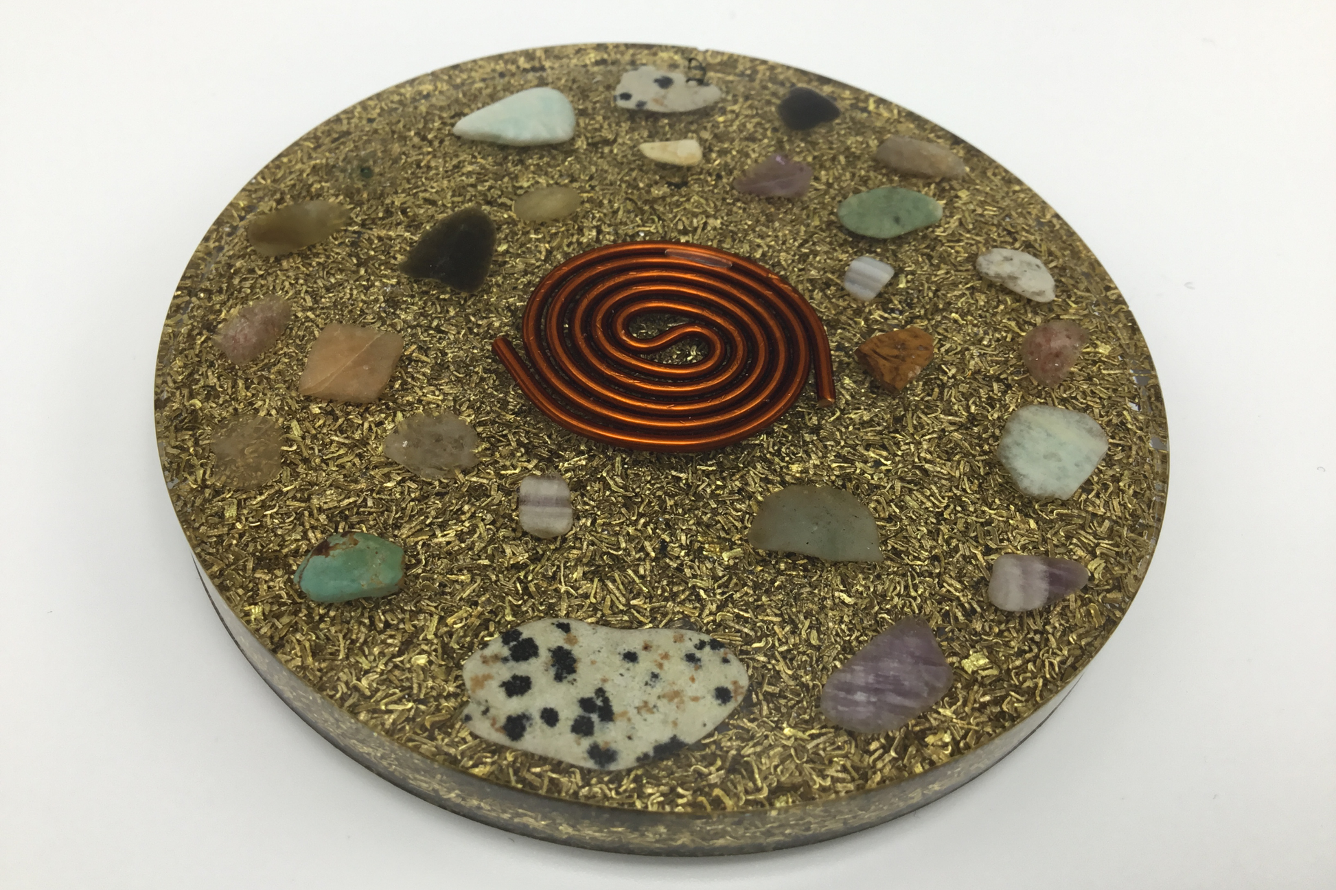 Een orgoniet oplaadschijf is ontworpen voor gerichte toepassingen. Het verhoogt de trilling van voeding, water, planten, ruimte en elektronica.